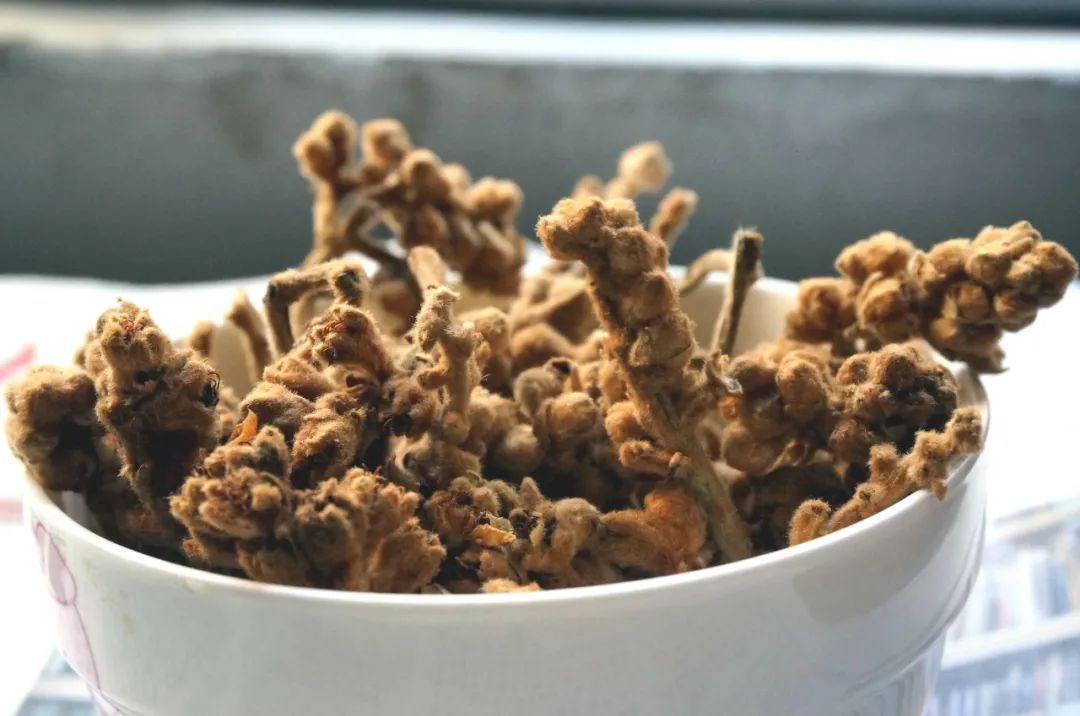 菊花在中醫(yī)常作為清熱解毒,養(yǎng)肝明目之用,民間常用來泡水代茶飲。現(xiàn)代藥理學(xué)研究發(fā)現(xiàn)它有抗菌抗病毒的作用;具有與西藥他汀類相似的降膽固醇的藥理作用,有抗衰老作用。
