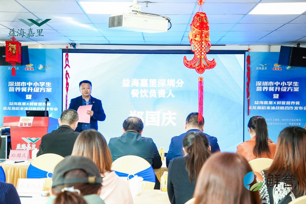 會議開場由益海嘉里深圳分餐飲負責(zé)人鄭國慶先生介紹益海嘉里的歷程并對鮮譽營養(yǎng)餐出品表示肯定,隨后鮮譽總經(jīng)理嚴資旺先生敘述了在營養(yǎng)餐升級過程中的努力,通過營養(yǎng)師和專業(yè)博士對營養(yǎng)餐數(shù)據(jù)和內(nèi)容的講述,讓在座的家委代表們更加了解了營養(yǎng)餐升級的必要性和可行性。益海嘉里稻米油項目的張波先生和朱若維女士以視頻的方式講述了金龍魚稻米油的來源以及榮譽,目前金龍魚稻米油已經(jīng)在日本上市多年并作為中小學(xué)生指定用油長期使用。此外,發(fā)布會現(xiàn)場還舉行了益海嘉里與鮮譽戰(zhàn)略合作的授牌及剪彩儀式。