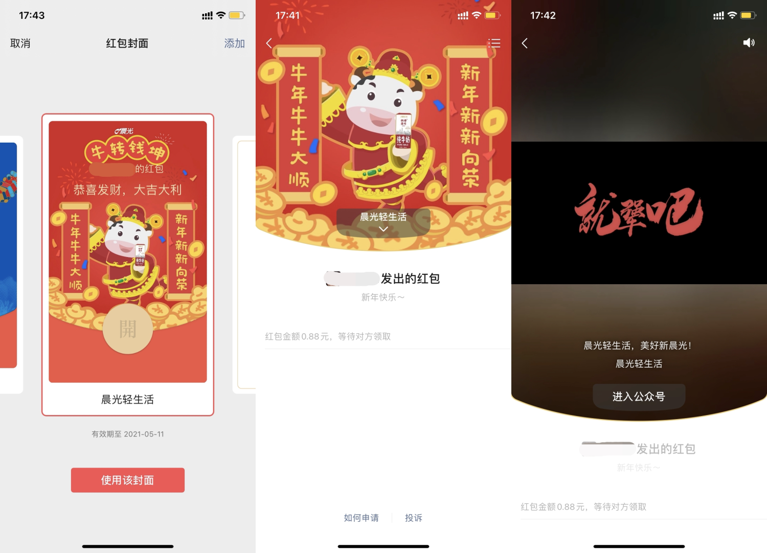 2021年的春節(jié)線上定制紅包封面成為網(wǎng)民熱議的話題,相較于往年的春節(jié)紅包,各具特色、風格不一的紅包封面無疑是今年最明顯的特色了。晨光乳業(yè)也為此做出了嘗試,針對晨光牛奶用戶和粉絲大膽設(shè)計,將憨態(tài)可掬的品牌IP放置在封面C位。無疑,這波寵粉操作有助晨光牛奶獲得更多粉絲的點贊,增強用戶粘度。