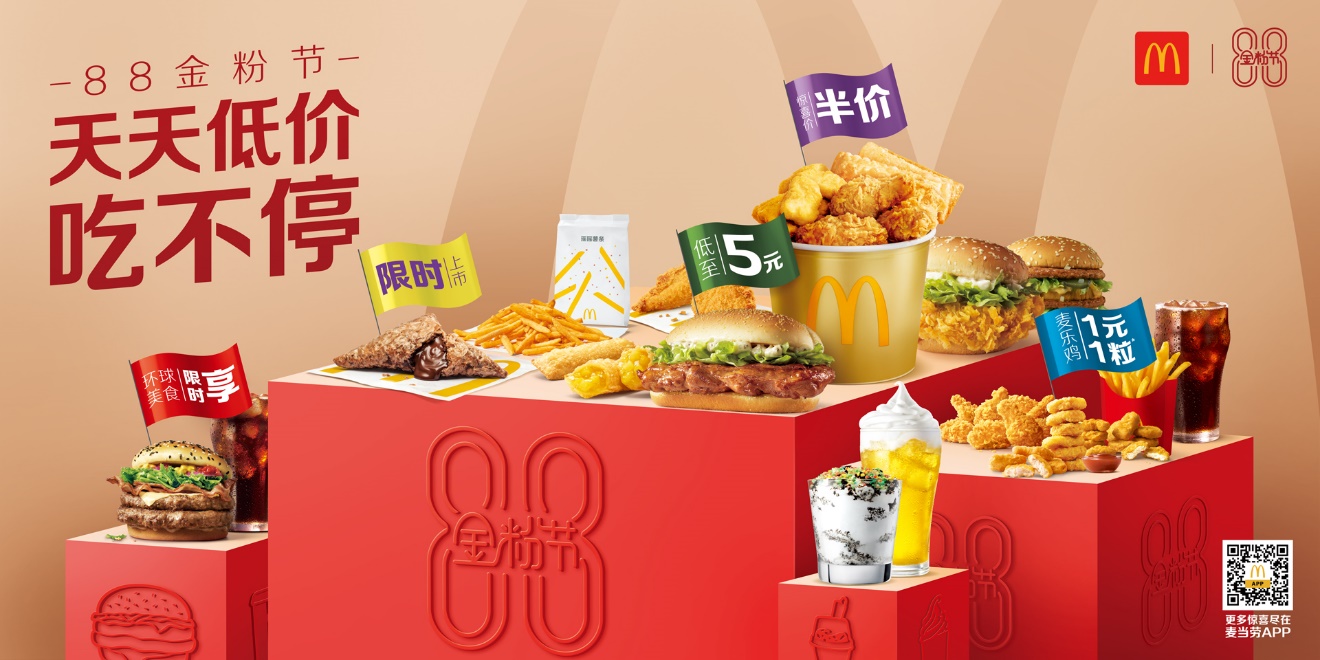 麥當(dāng)勞中國啟動2021年88金粉節(jié),開啟連續(xù)28天的會員專享驚喜優(yōu)惠。