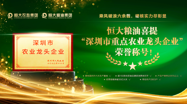 ?恒大糧油斬獲“深圳市重點(diǎn)農(nóng)業(yè)龍頭企業(yè)”稱號(hào)