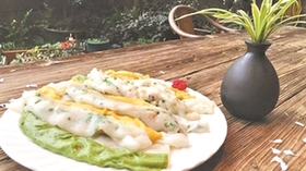 其是由切成碎片狀的薄餅及其它肉類(lèi)、蔬菜、香料等混合在一起制成的。集鮮味十足的蝦仁及辛辣的香料于一體,味道非常好。