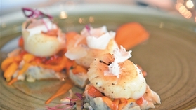 選材對(duì)海鮮的烹飪很重要。例如這款香煎帶子,酒店行政總廚Francesco建議選取加拿大新鮮帶子,個(gè)頭大,肉質(zhì)鮮嫩多汁,口感更為Q彈。