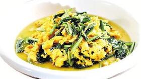 曾經(jīng),他們?cè)囘^用上百種方法來(lái)試烹制灰桃菜,最后發(fā)現(xiàn),最佳組合依然是金沙做法,用咸蛋黃推出金沙湯底。