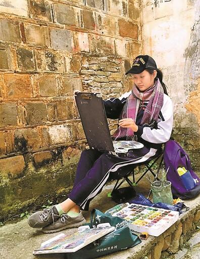 “初中時,我喜歡畫畫,買很多書自己研究但沒有系統(tǒng)學(xué)過。聽老師說喜歡畫畫的同學(xué)可報考深圳市美術(shù)學(xué)校,我就來了。”丁心格在老師前很輕松愉快。