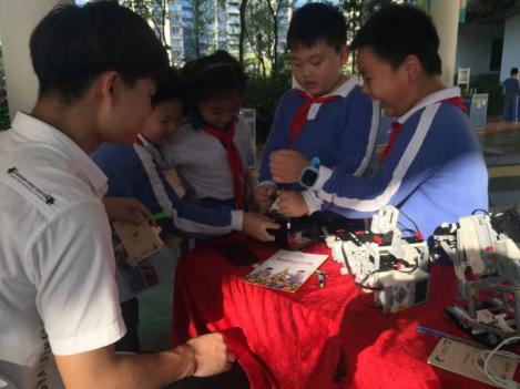 在活動現(xiàn)場,不少智能科技迷正被愛匯百變教育科技有限公司的EV3編程機器人高爾夫、EV3編程機器人幸運大轉(zhuǎn)盤、EV3編程機器人障礙大闖關(guān)、電磁感應千人震等系列體驗活動,通過親身體驗,同學們收獲了LEGO仿真機械結(jié)構(gòu)及圖形化編程、電動發(fā)電、電磁感應、電路等科普知識。