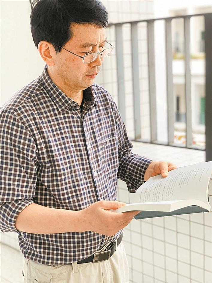 袁小林在翻閱《經(jīng)典唐詩(shī)英譯欣賞》。