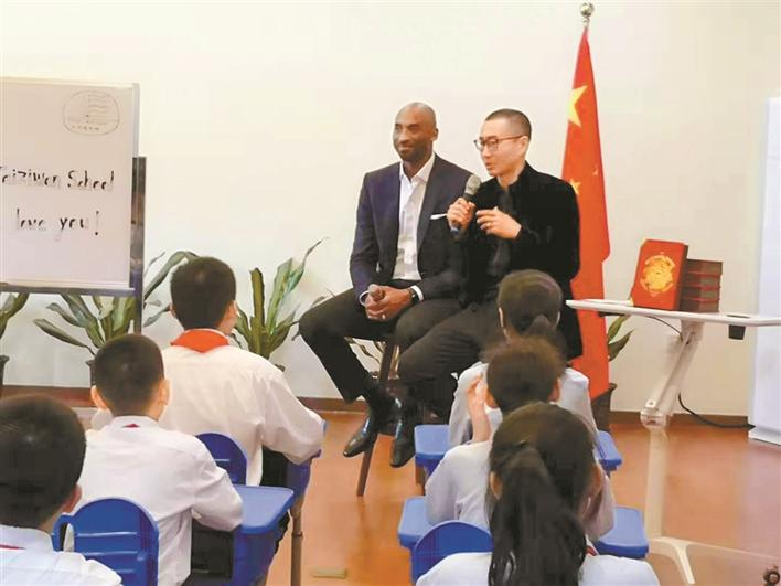 “來了,來了!”隨著人群的騷動(dòng),一個(gè)高大的身影閃了進(jìn)來,科比手捧一束鮮花來到了課堂。科比的到來,讓大家正襟危坐,聽從偶像的人生教誨。