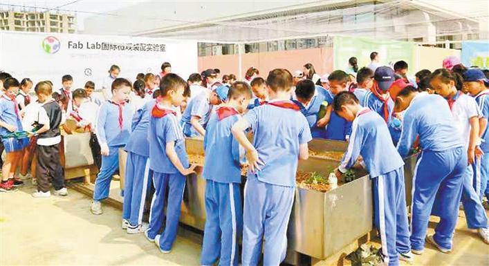 如何找到這所學(xué)校獨具特色的發(fā)展道路,吳少文一直在思考探索。在探索過程中,吳校長發(fā)現(xiàn)現(xiàn)代城市兒童存在“自然缺失癥”,再加上勞動教育的弱化,學(xué)校生態(tài)教育內(nèi)容和體驗的嚴重缺失,都對孩子們情感、態(tài)度和價值觀塑造造成了嚴重的負面影響。面對這一現(xiàn)狀,吳校長始終秉承“日新其業(yè),潤田致真”的校訓(xùn),在“善教育,法自然”辦學(xué)理念的引領(lǐng)下,將“自然主義教育”融入學(xué)校的校本課程,以新田社區(qū)原有的“田文化”傳承為切入點,因地制宜,在校園里開辟一塊教育田,逐步打造校園體驗學(xué)習(xí)空間,建立生態(tài)體驗式實踐基地,讓孩子們在無處不在的真實情境中學(xué)習(xí)成長。