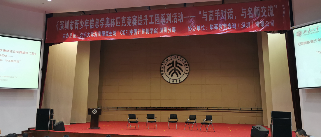 見圳客戶端、深圳新聞網8月16日訊 近日,深圳市青少年信息學奧林匹克競賽提升工程系列活動——“與高手對話,與名師交流”在北京大學深圳研究生院國際會議報告廳舉行。本次活動由北京大學深圳研究生院、 CCF(中國計算機學會)深圳分部聯(lián)合主辦,畢莘教育咨詢(深圳)有限公司協(xié)辦。