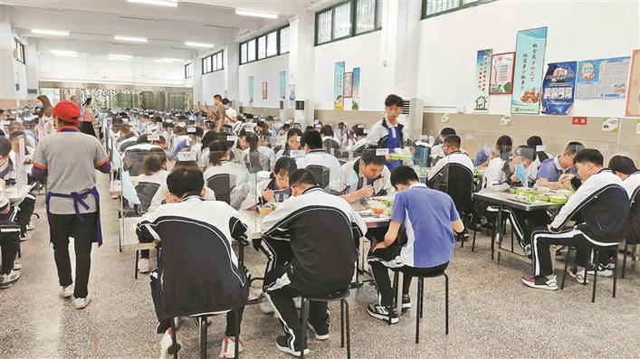 “學(xué)校食堂飯菜可口,有多種可以選擇。”梅林中學(xué)高三(7)班學(xué)生劉嘉琳表示。據(jù)悉,返校當(dāng)天,該校高三年級(jí)有480多位學(xué)生在學(xué)生餐廳和改造后的乒乓球場(chǎng)定人定座就餐。