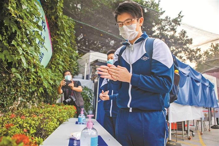 深圳實(shí)驗(yàn)學(xué)校初中部初三學(xué)生進(jìn)校門(mén)后自覺(jué)消毒洗手。晶報(bào)記者賴(lài)?yán)?攝