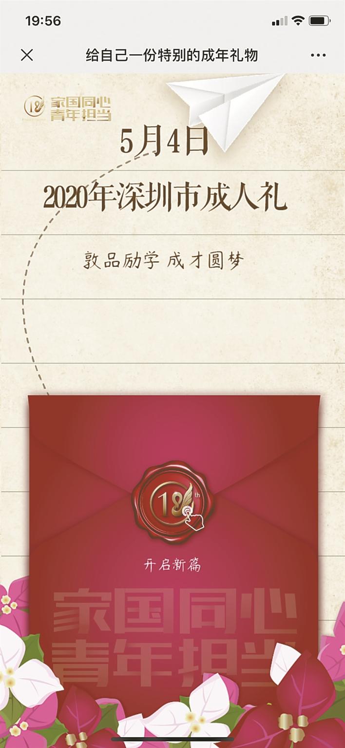 “往年的成人禮活動(dòng)都在線下舉辦,本以為今年受疫情影響,成人禮可能舉辦不了,沒想到改到了線上舉行,這種方式很有創(chuàng)意,也彰顯了深圳對(duì)未來主人的高度重視。”