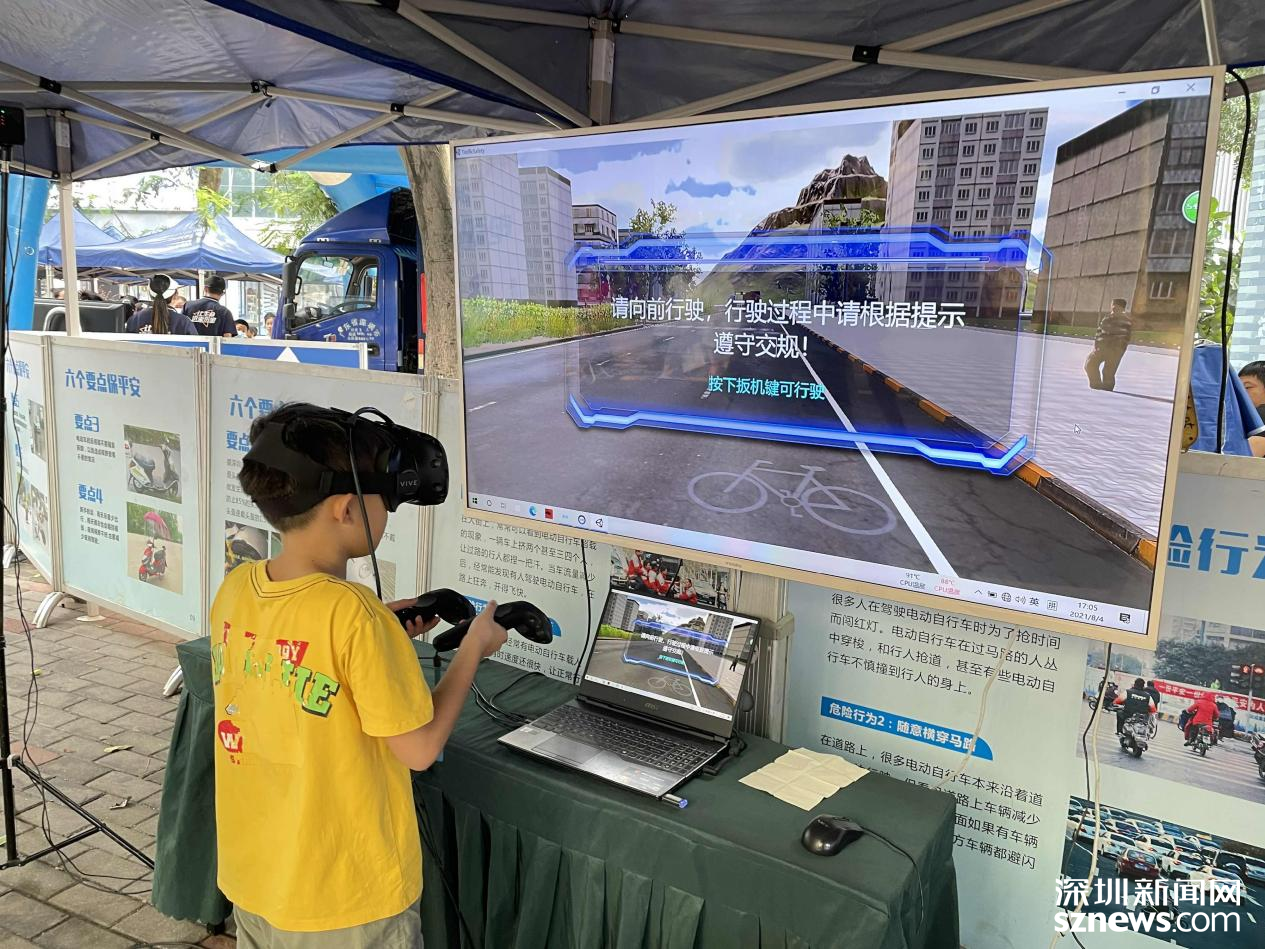 居民和小朋友們戴上VR眼鏡體驗電動車騎行時的風(fēng)險