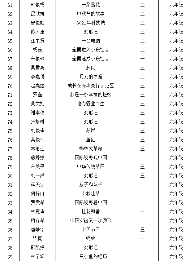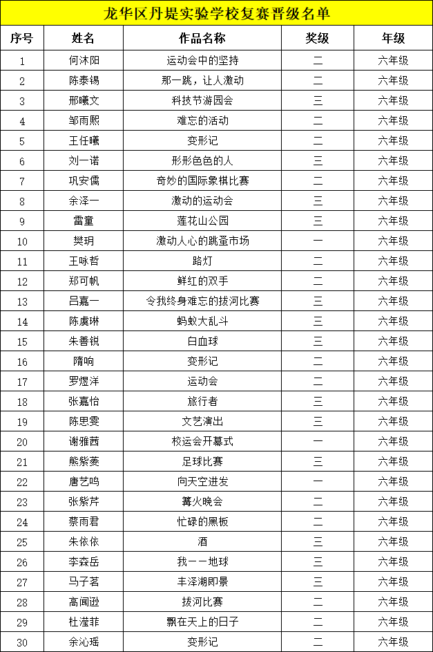 自2021年1月,活動征稿啟動以來,獲得了深圳市廣大中小學生、教師、文學愛好者的熱烈響應積極參與,吸引了深圳百余所學校的上萬人關(guān)注報名?,F(xiàn)公布龍華區(qū)丹堤實驗學校晉級復賽名單如下: