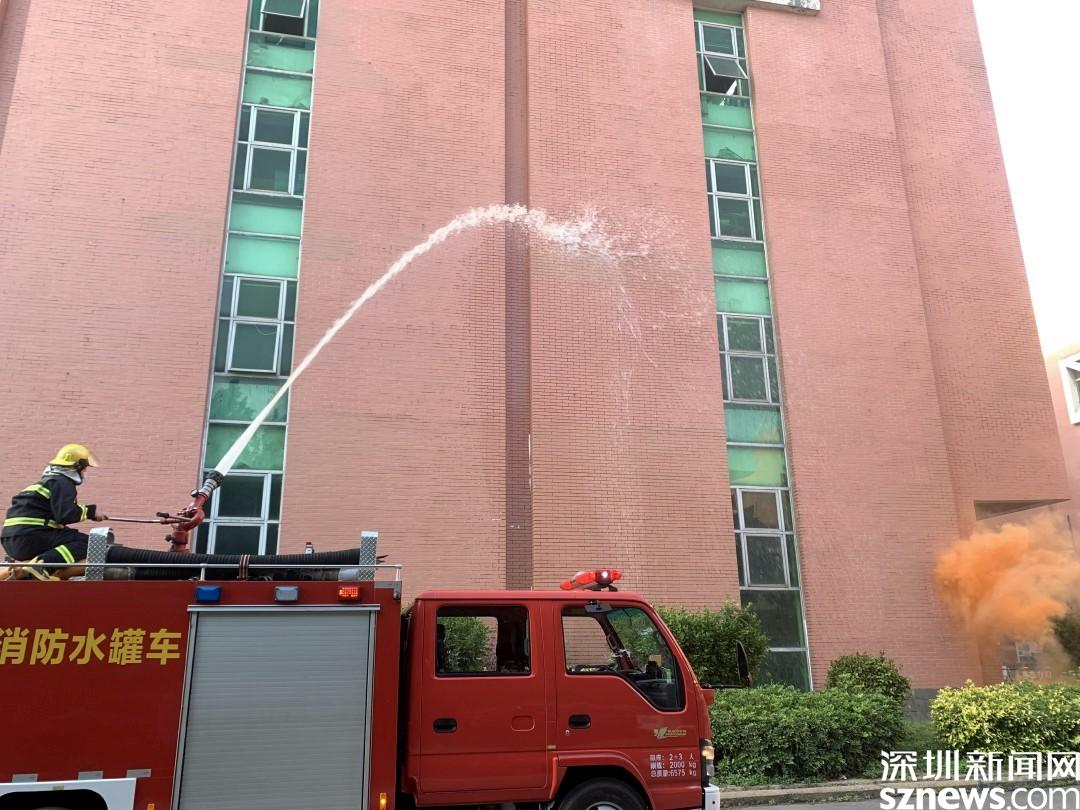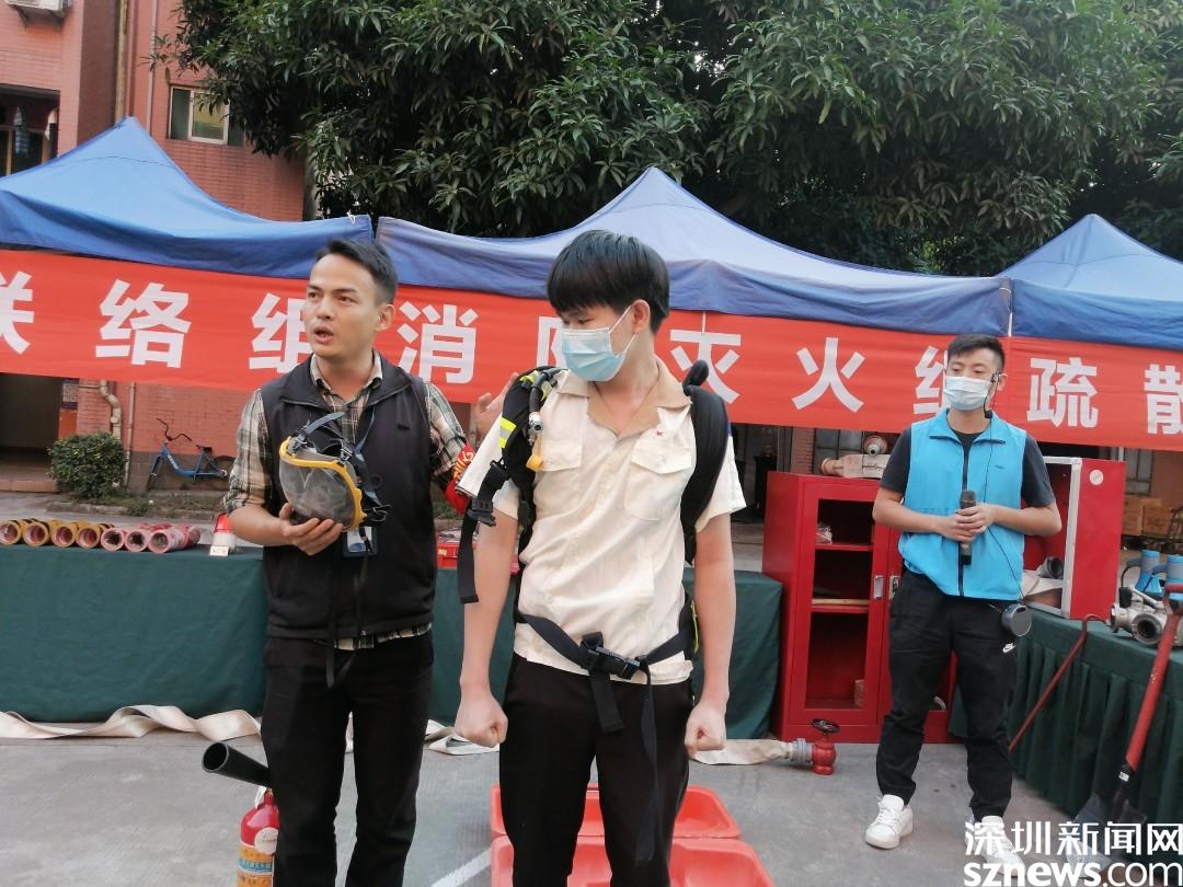 演練情景設定為工業(yè)園巡查人員發(fā)現(xiàn)火情,立刻上報并報警。隨后火警警報驟響,樓道內(nèi)冒出濃煙,疏散演練正式開始。工業(yè)園職工、居民在各組工作人員的指揮下,用口罩、衣服等捂口鼻,屈膝彎腰沿著既定的疏散路線,迅速向安全區(qū)域撤離。隨后社區(qū)消防員到達現(xiàn)場,用消防高壓水槍進行高空滅火,撲滅火災,解除警報。演練結束后,社區(qū)還組織工業(yè)園職工、居民參加安全體驗活動,學習消防救援設備的用法、進行消防結繩和滅火實操訓練。