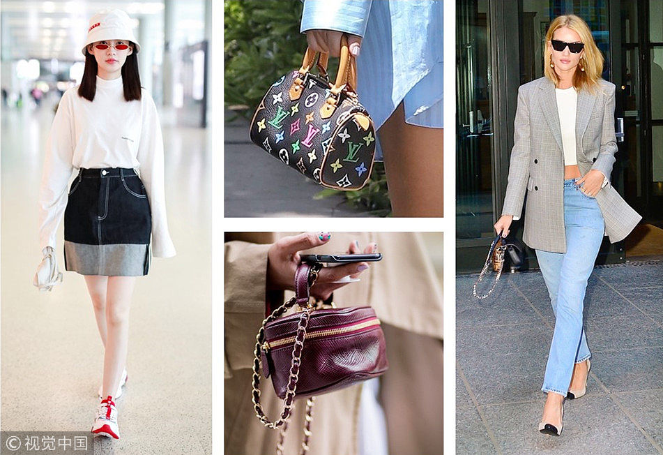 小到連手機都裝不下的迷你包潮人、超模們卻在瘋狂追捧,或許你覺得它很雞肋,但不得不承認迷你手提包在時尚圈的地位。一只小小的手提包拎出門,簡直就是整套Look的點睛之筆。 (圖片來源:視覺中國)