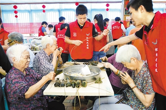 今年端午節(jié),市義工聯(lián)的義工們來到福田區(qū)福利中心,與老人一起進行包粽子比賽,在輕松快樂的氣氛中陪伴老人們過端午。 本報資料照片