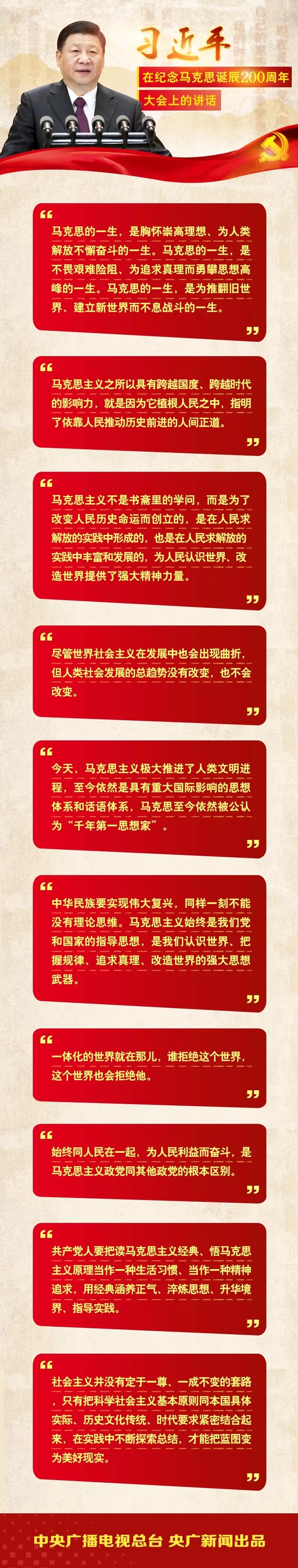 2018年5月4日上午10時(shí),紀(jì)念馬克思200周年誕辰大會(huì)在人民大會(huì)堂舉行。中共中央總書記、國家主席、中央軍委主席習(xí)近平出席大會(huì),并發(fā)表重要講話。
