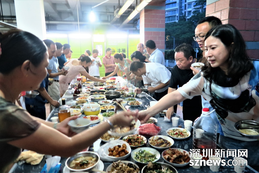 深圳新聞網(wǎng)訊 (記者 劉婷 林毓瑾 通訊員 張晉)住在鋼筋水泥森林,一墻之隔不往來,擦肩而過不搭話,這或許是城市鄰里關(guān)系的“痛點(diǎn)”,但深圳水木華庭的業(yè)主在8月11日舉辦了別開生面的“百家宴”,卻吃出濃濃的鄰里情,小編隔著屏幕都聞到了“愛的味道”…… 為慶祝水木華庭新一屆業(yè)委會(huì)的誕生,水木華庭業(yè)主微信群的群主楊莉建議11日在4棟B單元架空層,開個(gè)“百家宴”。這個(gè)主意一出來,水木華庭的業(yè)主們紛紛響應(yīng),業(yè)委會(huì)成員和業(yè)主大會(huì)籌備組成員也都紛紛表示:屆時(shí)將爭(zhēng)取貢獻(xiàn)一兩個(gè)拿手好菜! 于是乎,業(yè)主們分頭行動(dòng),籌備工作有條不紊地進(jìn)行。8月11日晚,水木華庭入伙15年來的首次“百家宴”如期舉行。