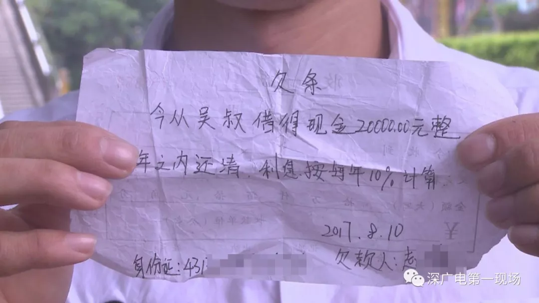 男子為了親叔叔一張借條跑來深圳 債主卻說沒借過錢