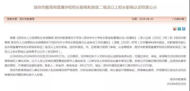 深圳校長職級認定結(jié)果公示,快看看你孩子的校長是幾級?