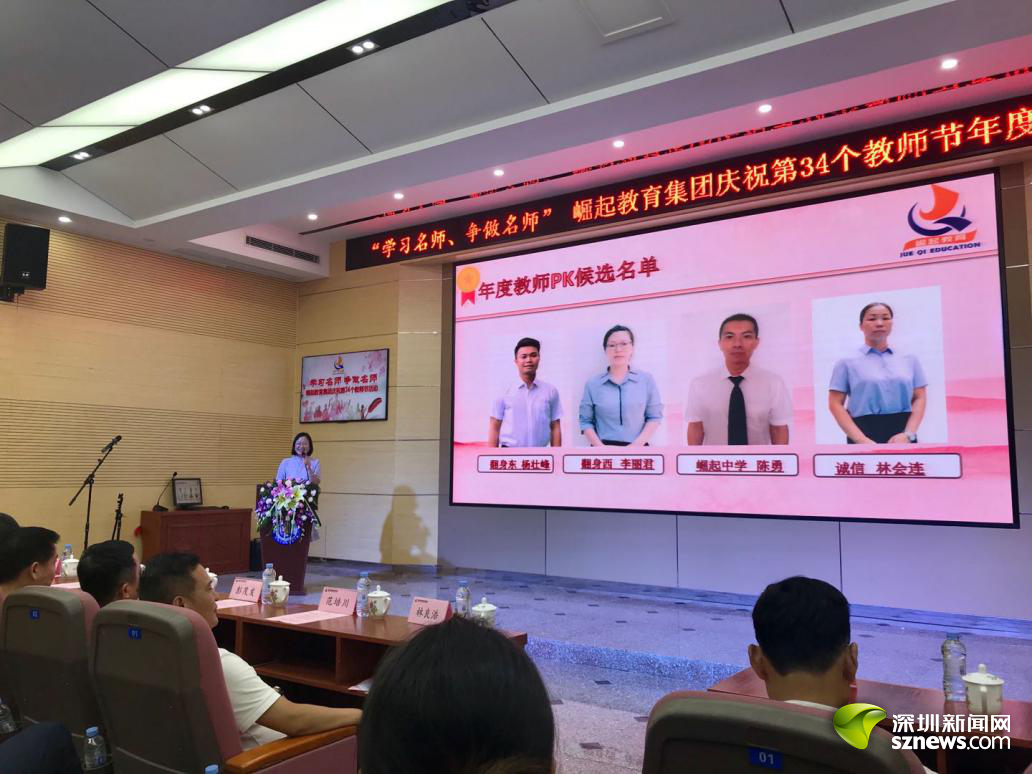 大會(huì)以“學(xué)習(xí)名師 爭(zhēng)做名師”為主題,活動(dòng)伊始,來自崛起實(shí)驗(yàn)中學(xué)的陳勇老師、翻身實(shí)驗(yàn)學(xué)校(東校區(qū))的楊壯峰老師、翻身實(shí)驗(yàn)學(xué)校(西校區(qū))的李麗君老師和誠(chéng)信實(shí)驗(yàn)學(xué)校的林會(huì)連老師進(jìn)行“年度教師PK”,通過現(xiàn)場(chǎng)演講和選題問答,最終崛起實(shí)驗(yàn)中學(xué)的陳勇老師獲得“崛起教育集團(tuán)2018年度教師”榮譽(yù)稱號(hào),其他三位老師獲“崛起教育集團(tuán)2018年度教師”提名獎(jiǎng)。