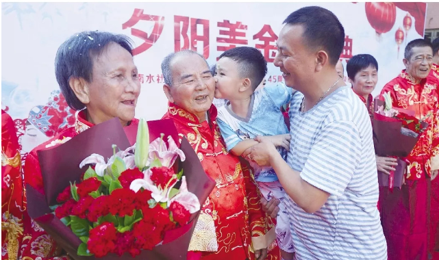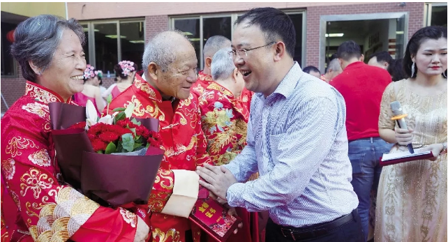 老人們雖然大多語言拘謹,不少羞于表達愛意,但幾十年的風雨同行,甘苦與共,相濡以沫,他們已用實際行動踐行“執(zhí)子之手、與子偕老”的不變承諾。他們對婚姻的堅守,彼此不離不棄,讓人為之動容、深受感染,獲頒金婚證書。