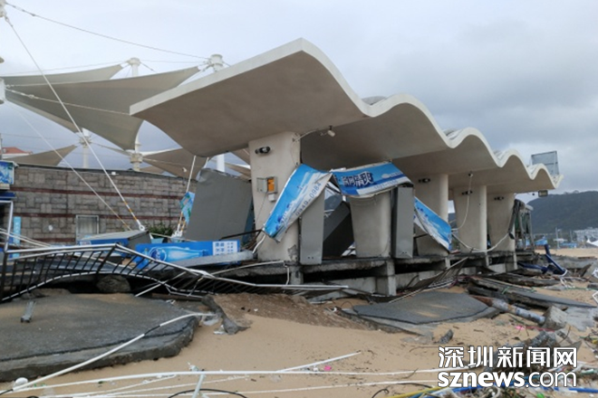 小梅沙旅游度假村景區(qū)內(nèi)沙灘海沙被卷走超7萬多立方,約2000米的堤岸及道路沖垮,公共、建筑設(shè)施及構(gòu)筑物全部受損,部分完全損毀,13處經(jīng)營(yíng)管理場(chǎng)所損毀,綠化、樹木等嚴(yán)重破壞,直接經(jīng)濟(jì)損失預(yù)估超過5000萬元。