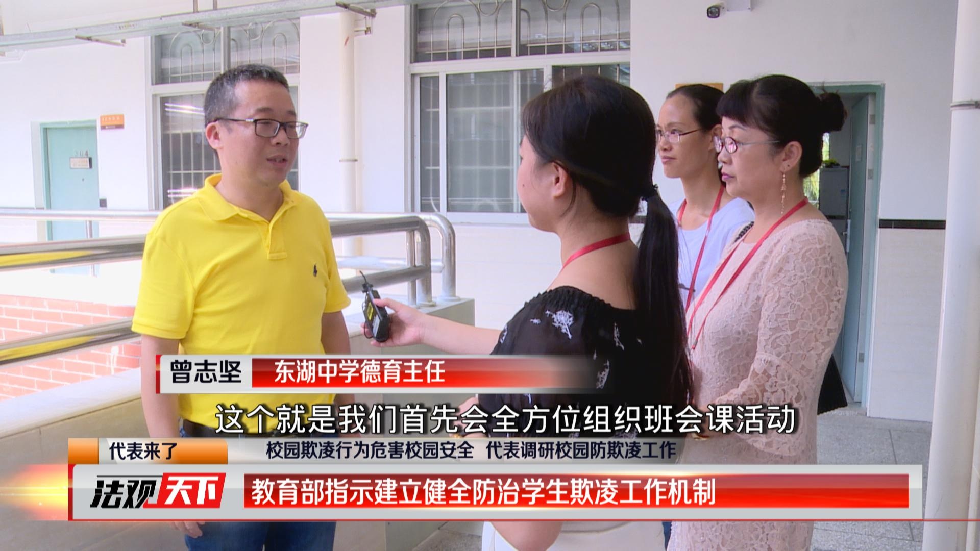 本周正值校園防欺凌安全宣傳周,胡春華、肖莉珍、宋敏等市人大代表隨機在市內(nèi)的中小學展開校園防欺凌調(diào)研。通過和學生及其家長的溝通他們發(fā)現(xiàn),對于校園欺凌父母普遍缺乏重視,孩子們還是依賴于學校的庇護,一旦遭遇欺凌他們都是向老師來求助。去年底,教育部等十一部門聯(lián)合印發(fā)《加強中小學欺凌綜合治理方案》,對學生欺凌進行了明確的界定,規(guī)范處置程序,明確不同情形的學生欺凌懲戒措施。