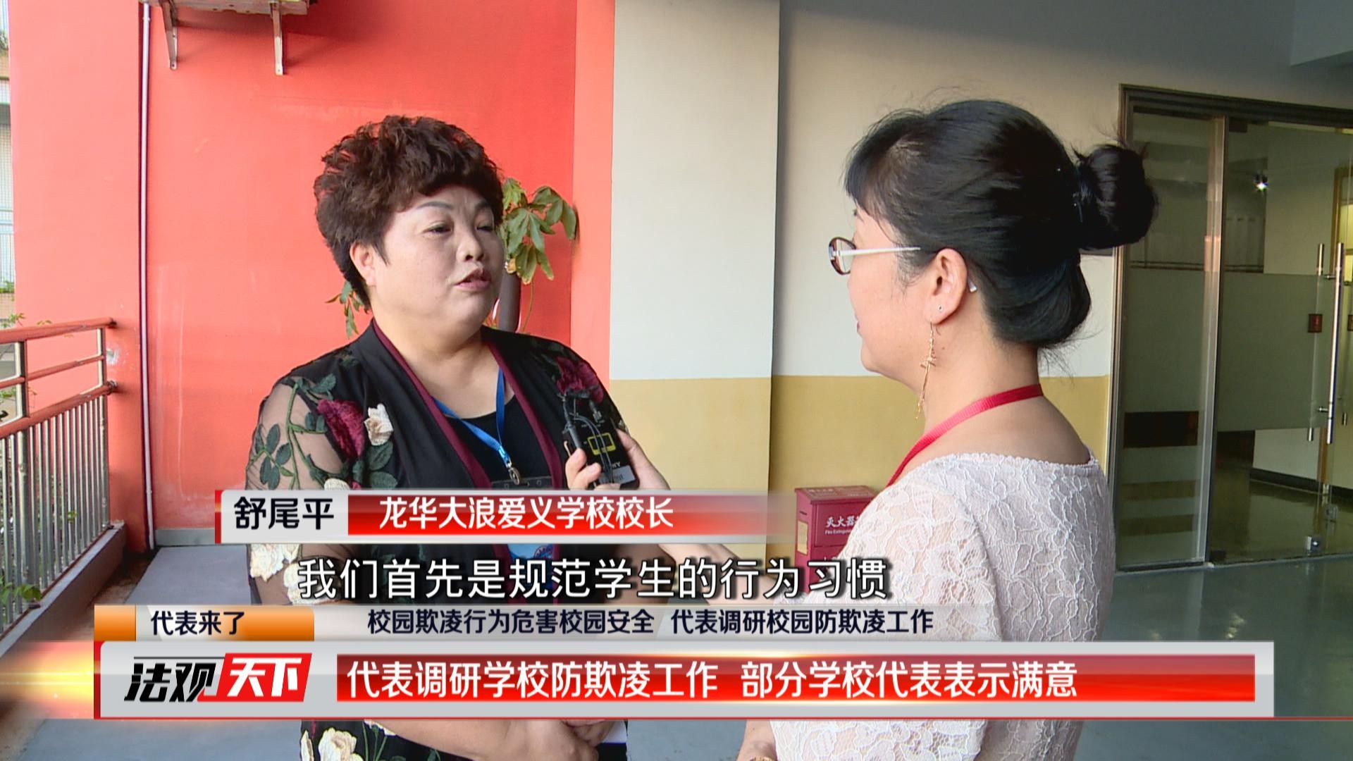 龍華大浪愛義學校,2016年12月份曾經(jīng)發(fā)生過學生被逼下跪自扇巴掌的惡性校園事件。而在該事件發(fā)生之后,學校就自發(fā)成立了教師督導隊,加強上下學期間校園周邊的巡查力度,及時排查隱患,防止校園欺凌事件的再次發(fā)生。胡春華、肖莉珍、宋敏三位人大代表在龍華大浪愛義學校內(nèi)視察調(diào)研,他們發(fā)現(xiàn)該學校防校園欺凌的宣傳工作值得點贊。龍華大浪愛義學校校長舒尾平告訴人大代表,在防止校園欺凌的問題上是非常積極去面對的,召開主題班會、宣傳公告、設(shè)置舉報信箱等,特別注重德育,引導孩子們注重品德,友愛相處,從根源上杜絕校園欺凌。