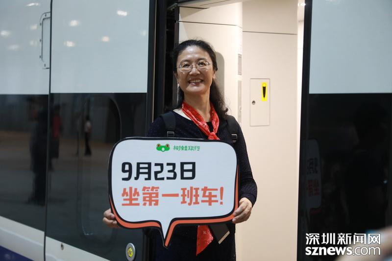凌晨6點(diǎn)30分許,乘坐第一班深北至香港高鐵的旅客在拍照留念
