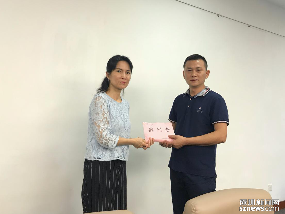 9月25日下午,深圳市關愛行動組委會辦公室(以下簡稱“市關愛辦”)和深圳市關愛行動公益基金會在得知這一情況之后,積極響應,在深圳市教育局相關部門的大力協(xié)調(diào)下,向李得父親送上3萬元慰問金。市關愛辦的相關負責人叮囑李得父親,希望慰問金可以幫其家庭渡過難關,也希望學校、家庭等各方多加鼓勵孩子,樹立信心, 放下思想包袱,好好配合開展治療,祝愿李得同學早日康復,重新回到校園上課。