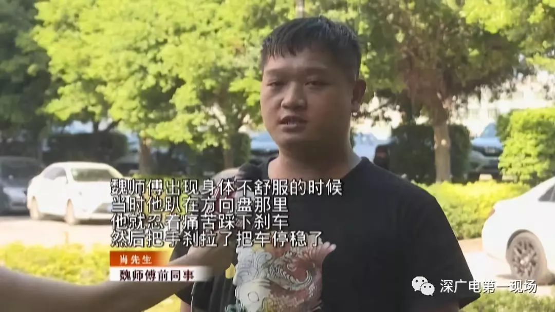 蕭先生是魏師傅的前同事,當(dāng)天正好乘車出行,他親歷了魏師傅突發(fā)狀況的整個(gè)經(jīng)過(guò)。他告訴記者,魏師傅忍著巨大的痛苦,將車子停下之后,馬上向他求助。