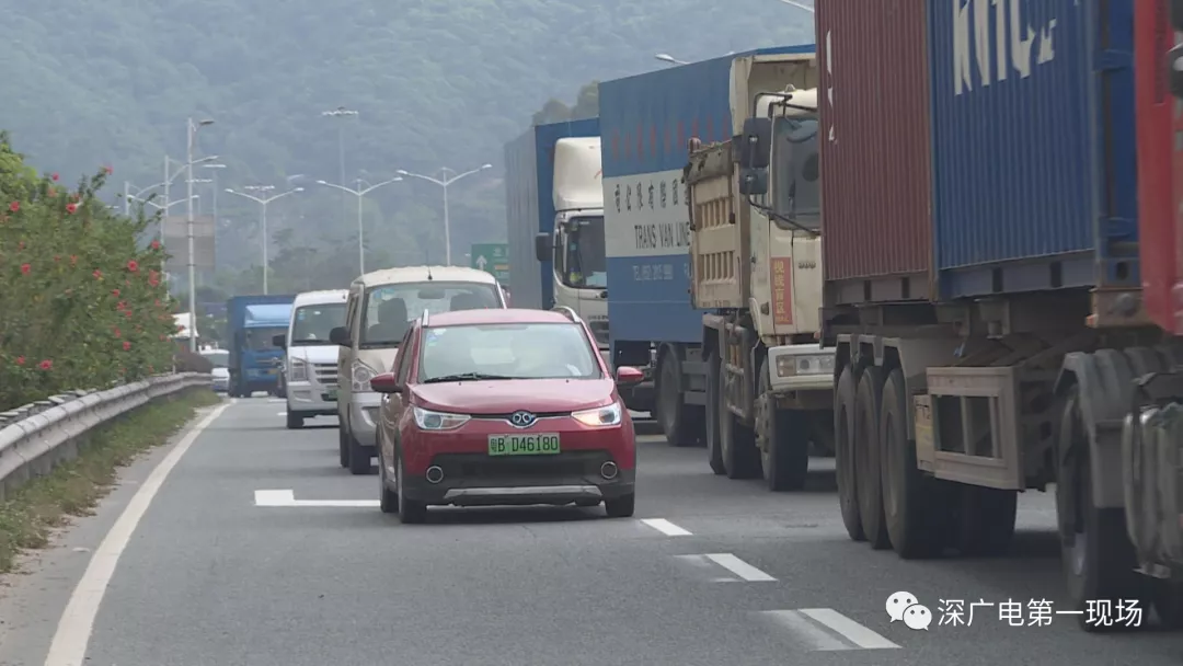 從梅觀路進(jìn)梅林關(guān)往西方向,轉(zhuǎn)南坪快速路的輔道,是一條對(duì)貨車(chē)開(kāi)放的路段。本來(lái)出口有兩條車(chē)道,而最近這兩車(chē)道變成了單車(chē)道,導(dǎo)致路況十分擁堵。