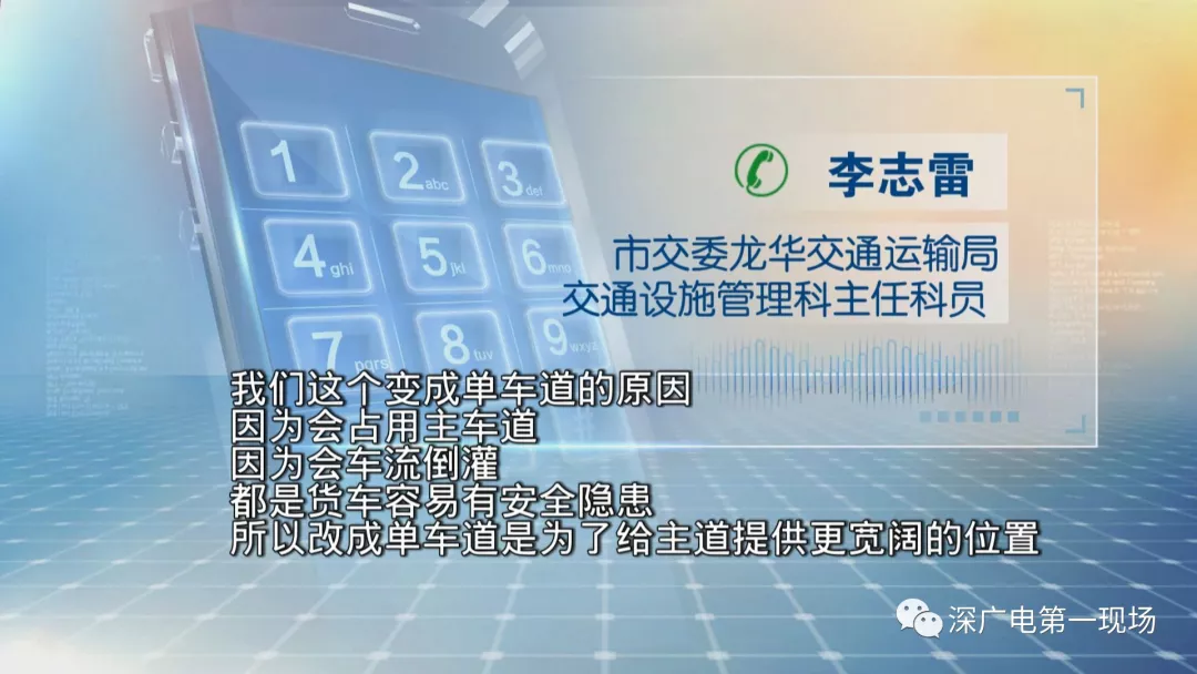 隨后,記者也來到了該路段,發(fā)現(xiàn)正如張先生所說,在轉南坪快速的輔道上,轎車與貨車并行現(xiàn)象隨處可見。在往南坪快速方向的路面標示也顯示,將之前的雙車道改為了單車道。