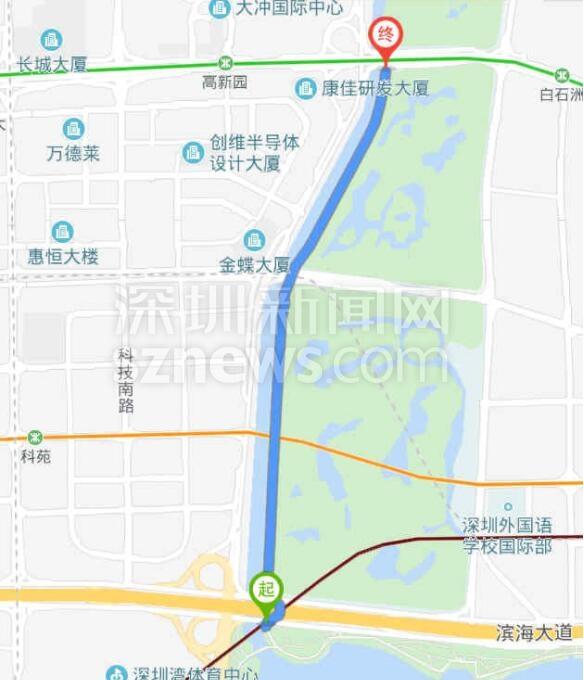 由于周六日深圳灣公園不讓進(jìn),而從蛇口新街到濱海沙河西立交橋這段路在公園內(nèi),該網(wǎng)友只能改從望海路騎至濱海沙河西立交,當(dāng)準(zhǔn)備由濱海沙河西立交騎行到深南沙河西立交時,又被告知這條騎行道同樣在深圳灣公園管轄范圍內(nèi),不準(zhǔn)進(jìn)。最后,網(wǎng)友只能帶著孩子沿沙河西路極其狹窄且危險的小道騎行到深南大道,再接著騎到深南沙河西,最終才到達(dá)大沙河公園(大沙河?xùn)|側(cè)的沿岸)。