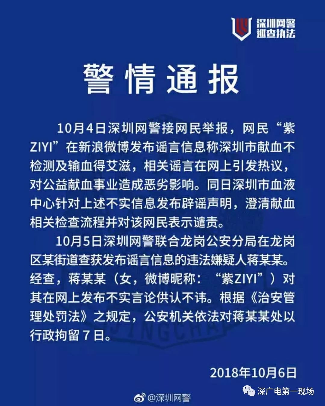 10月4號,微博名為“紫ZIYI”網(wǎng)友在微博上發(fā)布了“深圳獻(xiàn)血不檢測、輸血得艾滋”的消息一言激起千層浪,言論被廣泛傳播。