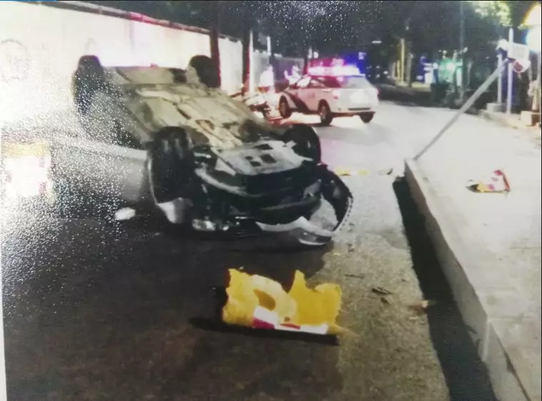 ,小車側翻撞成了個“四輪朝天”,現(xiàn)場一片狼藉,幸運的是車門開得了,周某便打開車門爬了出來。