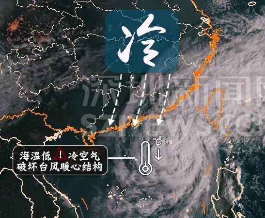深圳市氣象局發(fā)布的冷空氣和海溫破壞臺(tái)風(fēng)結(jié)構(gòu)示意圖