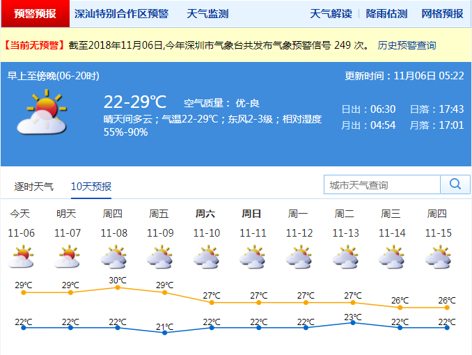 原標(biāo)題:深圳氣溫回升 10 天內(nèi)無(wú)法入秋 今日最高氣溫 29 ℃左右