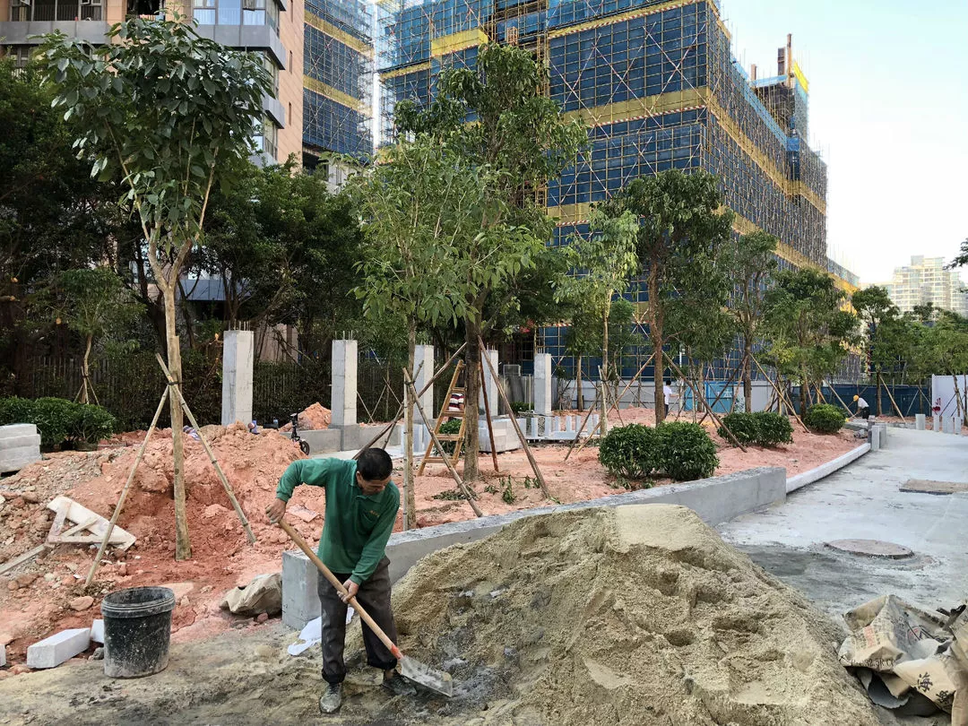 ▲街心公園施工中昨日下午,記者先后來到三個(gè)正在建設(shè)的街心公園走訪,大鏟社區(qū)街心公園、東角頭地鐵站A/B廣場(chǎng)(街心公園)剛剛動(dòng)工,而后海濱路街心公園雛形初顯,公園路面已經(jīng)修好,工人正在種植喬木。