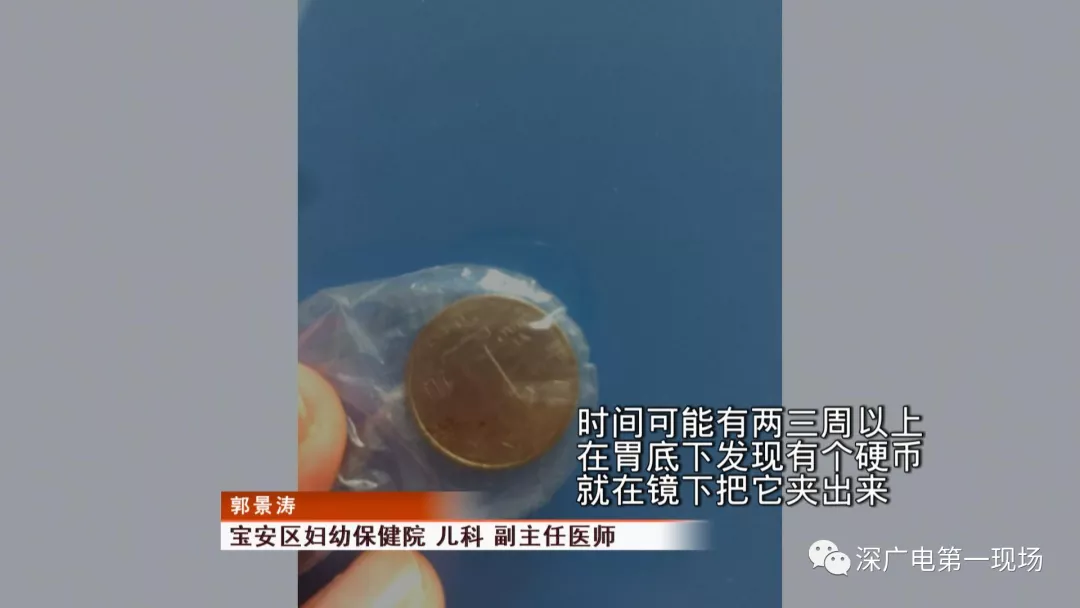 經(jīng)過(guò)兩個(gè)小時(shí)的時(shí)間,兒科醫(yī)生郭景濤為患兒取出了藏在胃底的一角錢(qián)硬幣。目前,患兒已經(jīng)痊愈出院。