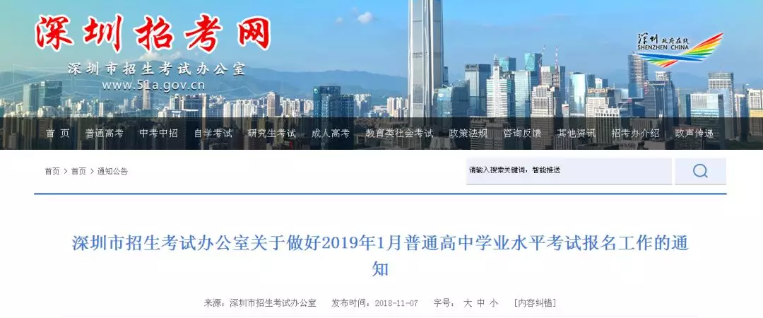 深圳新聞網(wǎng)11月12日訊(記者 劉婷)近日,深圳市招生考試辦公室發(fā)布了《深圳市招生考試辦公室關(guān)于做好2019年1月普通高中學(xué)業(yè)水平考試報(bào)名工作的通知》,明確要求:報(bào)名時(shí)間為2018年11月12日至17日,其中12日至14日為網(wǎng)上預(yù)報(bào)名時(shí)間,15日至17日為報(bào)名點(diǎn)現(xiàn)場報(bào)名確認(rèn)時(shí)間。