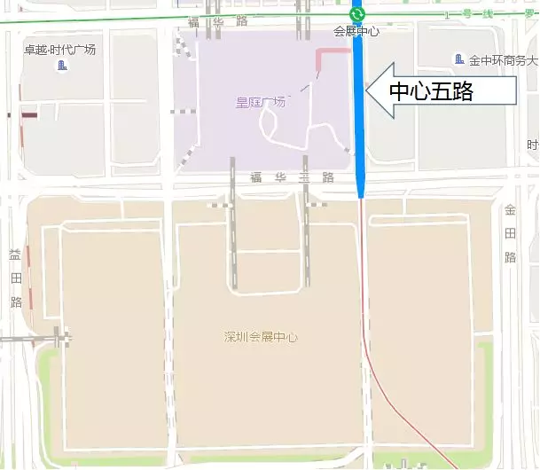 高交會(huì)期間,在福華三路北側(cè)設(shè)大巴??空荆蟼?cè)設(shè)的士上落站,公交大巴從金田路進(jìn)入福華三路并在站點(diǎn)上下客,的士車輛均由益田路方向駛?cè)?,自金田路駛出并在指定站點(diǎn)排隊(duì)候客。
