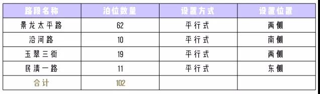 其中,桂月路擬設(shè)置泊位60個(gè),樟閣路設(shè)置39個(gè),榮福路設(shè)置112個(gè),溢佳路設(shè)置59個(gè),新丹路設(shè)置100個(gè),福慶路設(shè)置27個(gè),翠幽路設(shè)置79個(gè),景龍?zhí)铰吩O(shè)置62個(gè),沿河路設(shè)置10個(gè),玉翠三街設(shè)置19個(gè),民清一路設(shè)置11個(gè),華天路設(shè)置47個(gè),永樂路設(shè)置21個(gè),簡上路設(shè)置63個(gè),上芬小學(xué)路設(shè)置18個(gè),新牛路設(shè)置21個(gè),油聯(lián)路設(shè)置18個(gè),黎光工業(yè)路設(shè)置22個(gè)??偣?88個(gè)“宜停車”泊位。