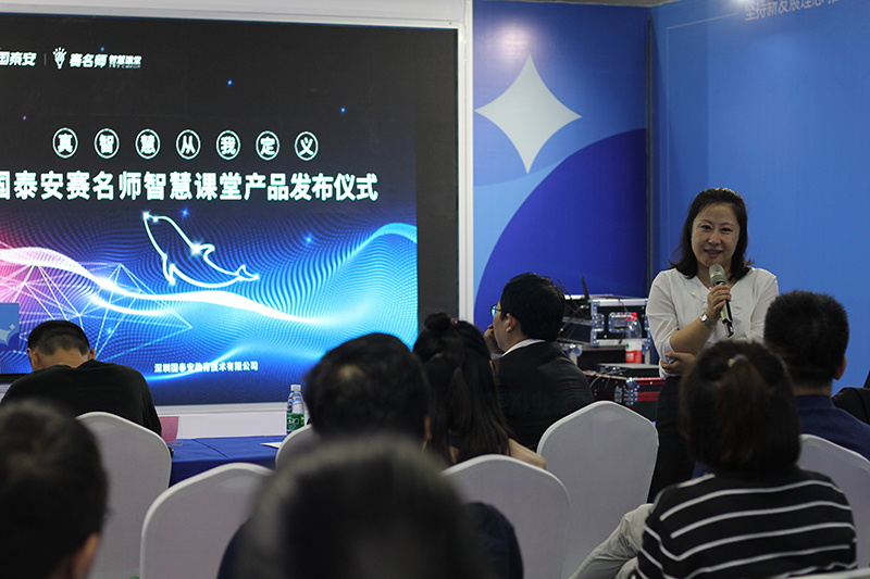 高交會開幕首日,“國泰安賽名師智慧課堂產(chǎn)品發(fā)布儀式”在高交會新產(chǎn)品新技術(shù)發(fā)布活動中閃亮登場,國泰安集團執(zhí)行副總裁、首席運營官丁艷博士出席發(fā)布儀式,介紹了國泰安賽名師智慧課堂在助推教育信息化2.0、推進教育教學方式改革中的重要作用,并著重闡釋了賽名師智慧課堂“真智慧”的含義,獲得與會嘉賓高度認同。