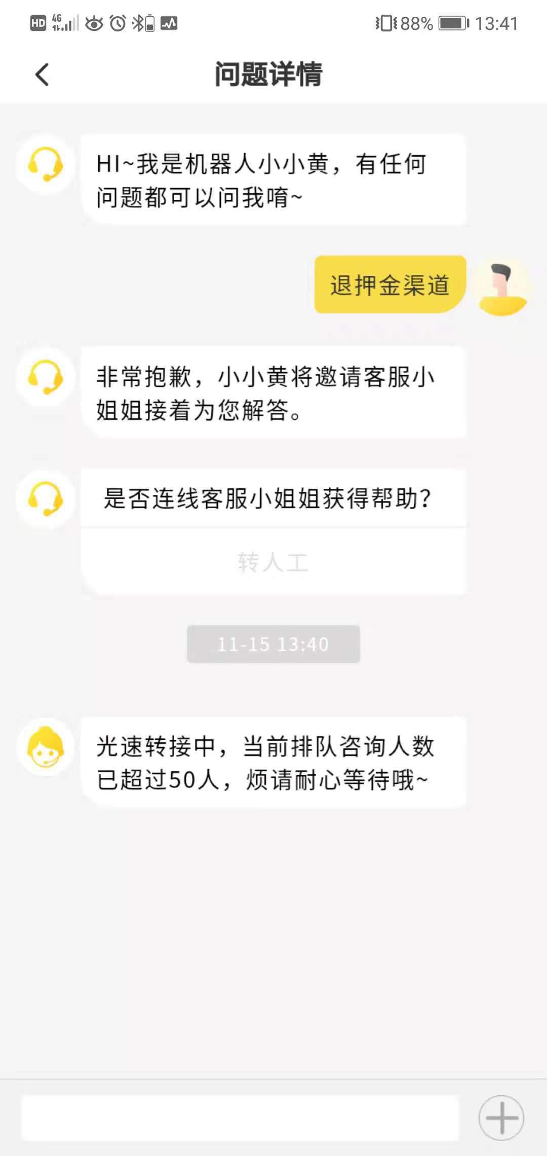 深圳特區(qū)報(bào)2018年11月16日訊“點(diǎn)人工服務(wù)永遠(yuǎn)顯示前面排隊(duì)超過(guò)50人,客服電話也打不通?!苯?有市民爆料稱,在ofo平臺(tái)退押金實(shí)屬不易。