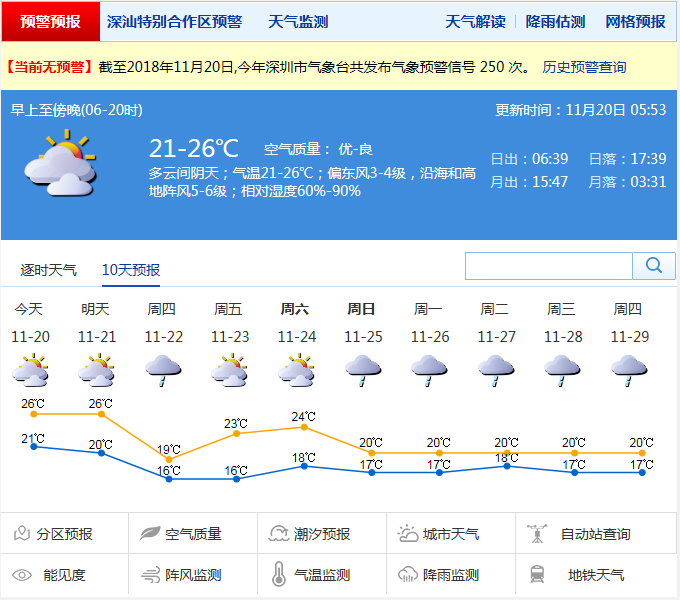 市氣象局發(fā)布未來十天天氣預(yù)報(數(shù)據(jù)更新于11月20日8時10分)
