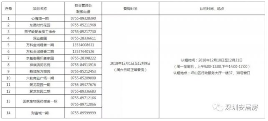 (三)統(tǒng)籌考慮本次配租房源實際供應數量和在庫輪候人需求情況,坪山在庫輪候家庭和企(事)業(yè)單位申請時間至2018年11月30日。如仍有房源需求的個人和企(事)業(yè)單位請在規(guī)定時間內遞交申請資料。